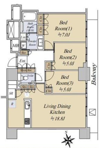 間取り詳細 | LDK 約18.5帖、洋室 約7帖、洋室 約5.0帖、洋室 約5.0帖 | ||||