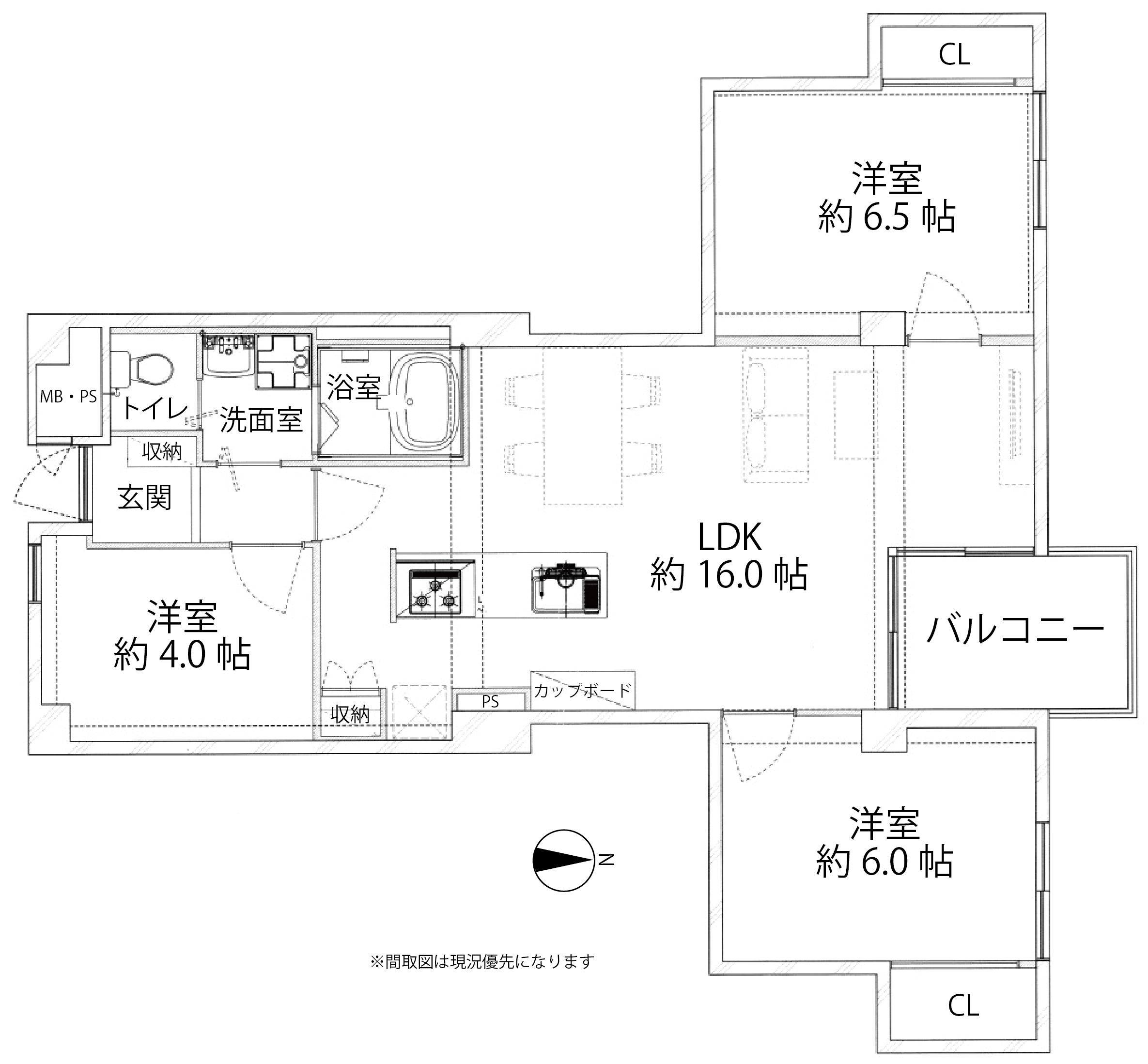 | 間取り詳細 | LDK約16帖、洋約6.5帖、洋約6.0帖、洋約4.0帖 | ||||