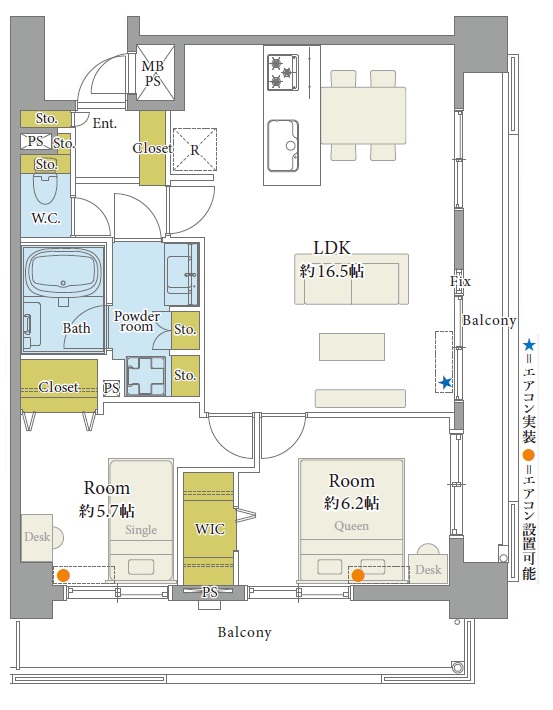 | 間取り詳細 | LDK 約16.5帖、洋室 約5.7帖、洋室 6.2帖 | ||||