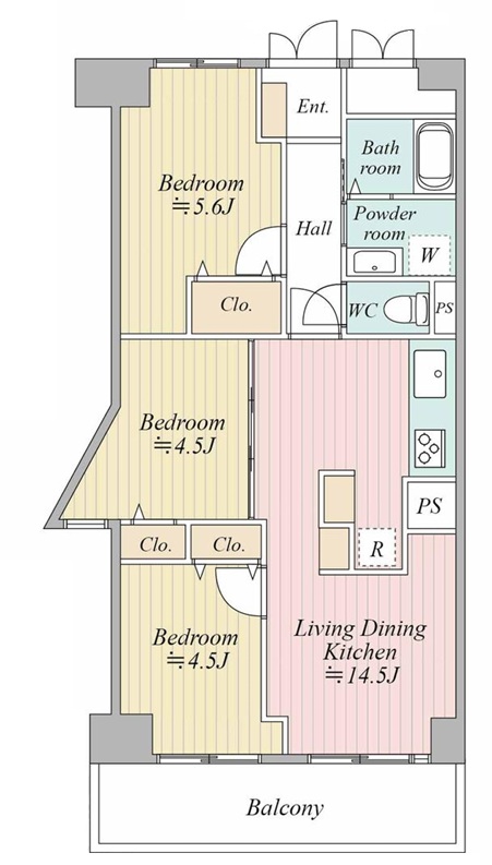 間取り詳細 | LDK 約14.5帖、洋室 約4.5帖、洋室 約4.5帖、洋室 約5.6帖 | ||||