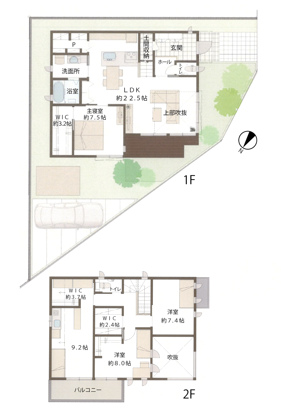| 間取り詳細 | LDK22.5帖、洋室 7.5帖、洋室7.4帖、洋室8.0帖、ウォークインクローゼット 約3.2帖・約3.7帖・約2.4帖 | ||||